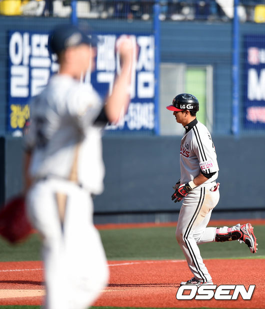 5회초 무사에서 LG 박용택이 중월 솔로 홈런을 치고 그라운드를 돌고 있다.