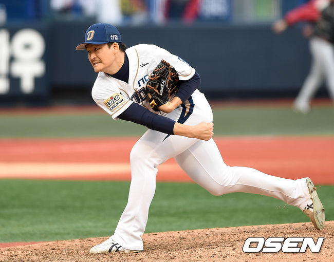 7회초 2사 2루에서 NC 원종현이 힘차게 공을 던지고 있다.