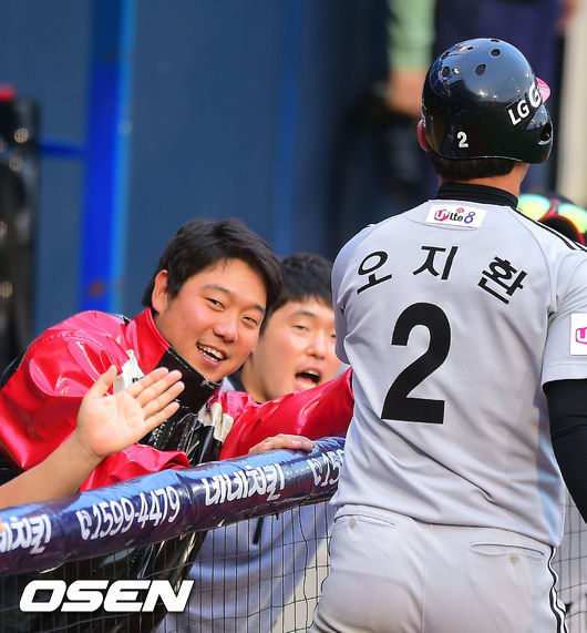 19일 오후 경남 창원 마산야구장에서 열린 2014 한국야쿠르트 세븐 프로야구 포스트시즌 준플레이오프 NC 다이노스와 LG 트윈스의 경기,8회초 NC의 실책으로 3득점을 올린 LG 더그아웃.