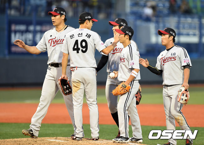 경기 종료 후 LG 선수들이 승리의 기쁨을 나누고 있다. /sunday@osen.co.kr