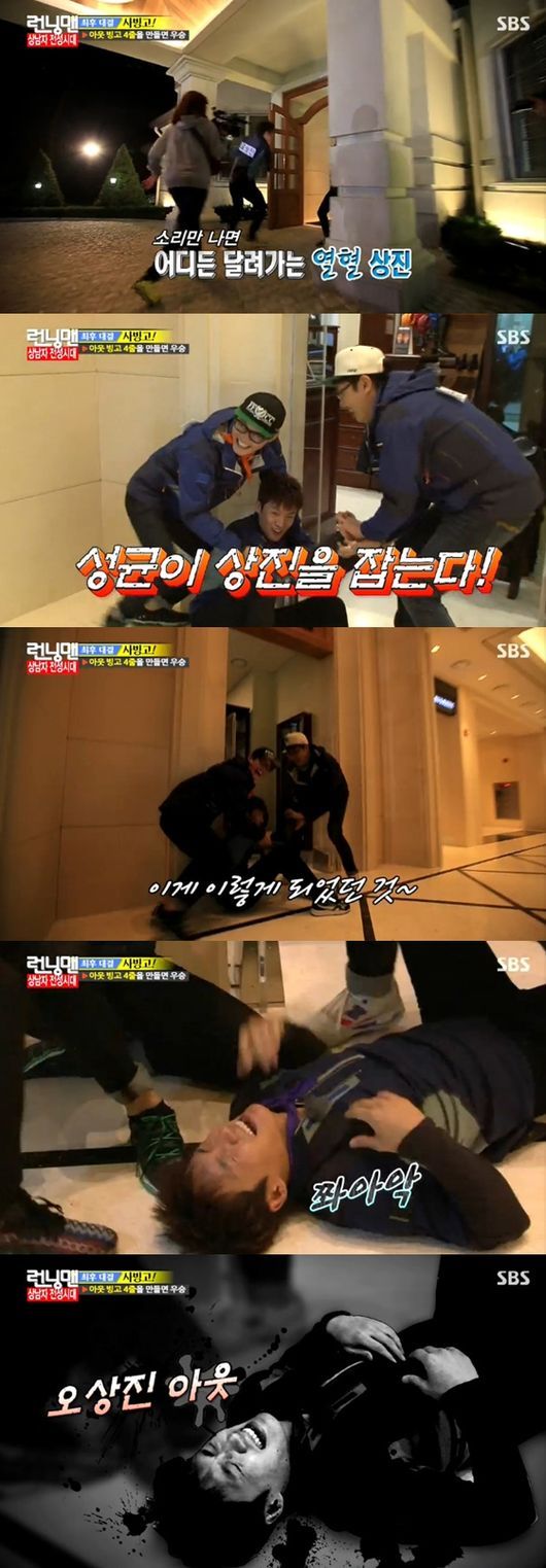 이어 오상진은 김성균이 조진웅에게 이름표를 떼일 위기에 처하자, 열심히 달려가 김성균을 도우려 했다.