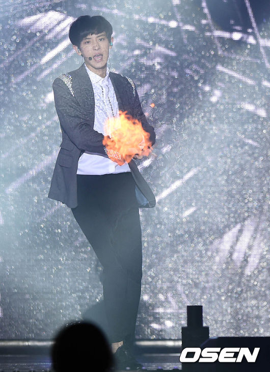 엑소K찬열이 멋진 무대를 선보이고 있다.