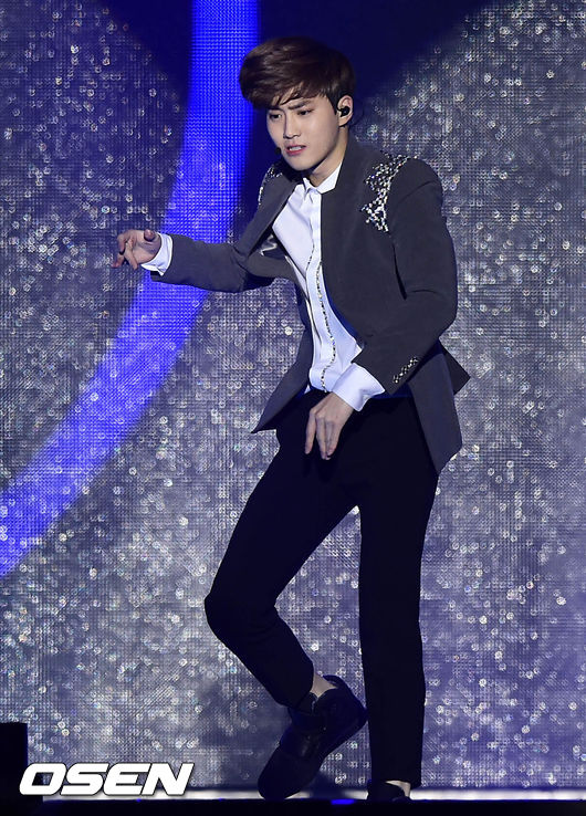 엑소K 수호가 멋진 무대를 선보이고 있다.