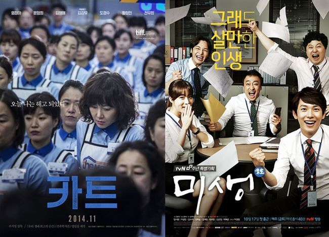 tvN 드라마 '미생', 영화 '카트', 웹툰 '송곳' 등 사회현실을 반영한 소재가 주목받고 있다.