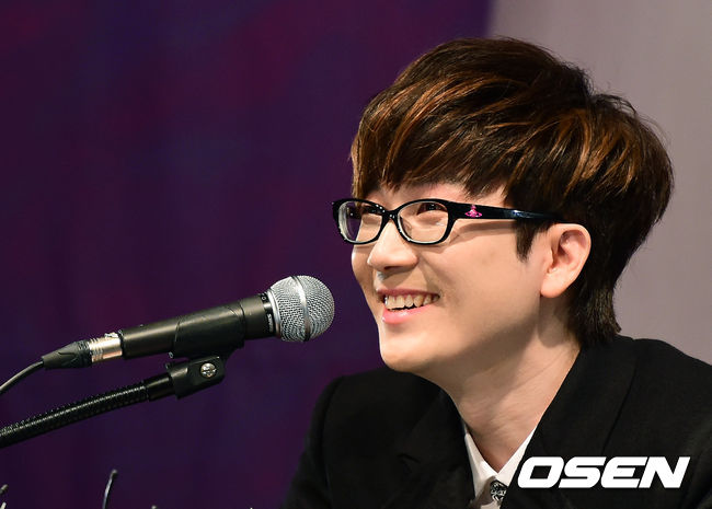 서태지가 질문에 답을 하며 미소짓고 있다.