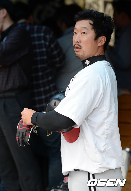 경기에 앞서 LG 이병규가 훈련을 준비하고 있다.