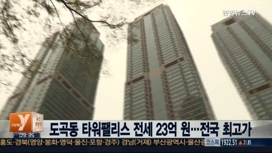 최근 1년간 전국에서 거래된 전세 아파트중 최고가는 도곡동 타워팰리스로 전세가가 무려 23억 원으로 알려져 화제를 모으고 있다.