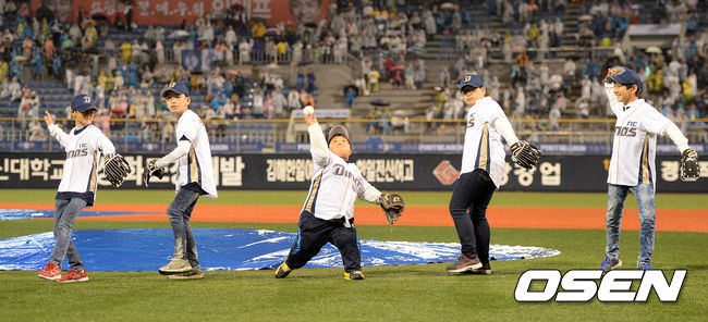 용인제일초등학교 학생들이 시구를 하고 있다. /sunday@osen.co.kr
