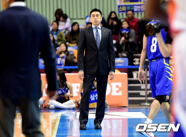 3쿼터 삼성 이상민 감독이 작전타임을 요청한 뒤 아쉬운 표정을 짓고 있다.