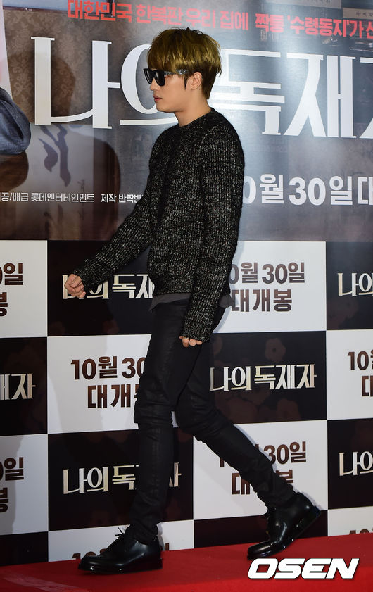 가수 김재중이 20일 오후 서울 자양동 롯데시네마 건대입구점에서 열린 영화 '나의 독재자' (감독 이해준) VIP시사회에 참석해 포토타임을 갖고 있다. 영화 '나의 독재자'는 대한민국 한복판, 자신을 김일성이라 굳게 믿는 남자와 그런 아버지 덕에 인생이 꼬여버린 아들의 이야기를 그린 작품이다.특히 최초의 남북정삼회담 리허설을 위해 김일성의 대역이 존재했다는 역사적 사실에 영화적 상상력을 가미한 신선한 내용으로 기대를 더하고 있다. 이해준 감독이 메가폰을 잡고 배우 설경구, 박해일, 윤제문 등이 열연하는 영화 '나의 독재자'는 오는 10월 30일 개봉 예정. / youngrae@osen.co.kr