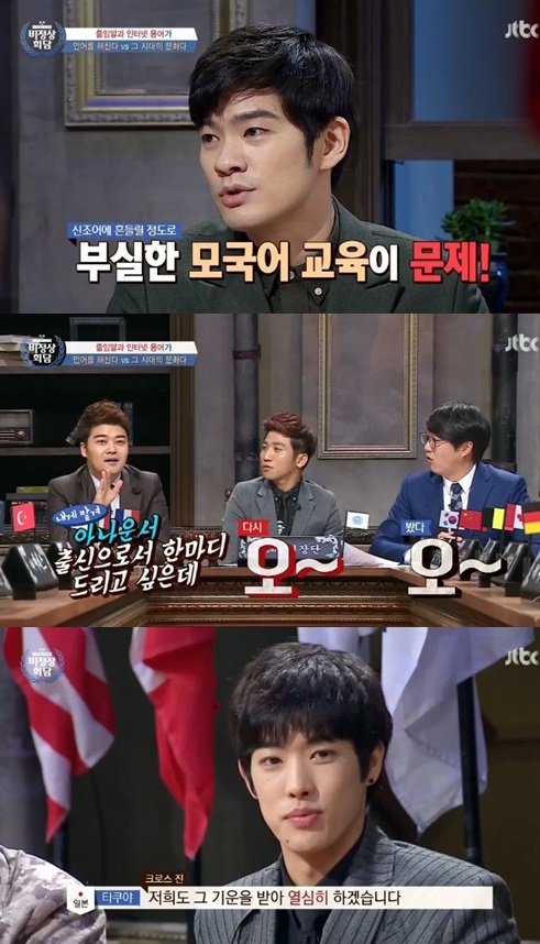 20일 오후 11시 방송된 JTBC '비정상회담'에서는 장기하가 출연해 '해외 진출을 포기하더라도 우리말 가사만 쓰고 싶은 나, 비정상인가요'라는 질문으로 한국 가요의 해외 진출을 놓고 토론을 벌였다.