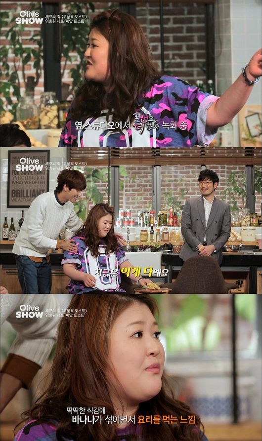 마침 준비된 임희원 셰프의 '여심공략 씨앗토스트와 구운 바나나' 요리를 본 이국주는 아담한 사이즈의 음식을 보고 "이 정도 양으로 여심을 공략할 수 있을까?"라고 되물어 스튜디오를 웃음바다로 만들었다. 하지만 맛을 본 후에는 "씨앗토스트의 딱딱한 식감과 구운 바나나의 부드러운 식감이 조화를 이루면서 입 안에서 하나의 요리가 된 느낌"이라고 말하며 극찬했다는 후문이다.