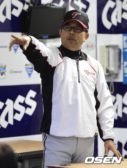 21일 오후 경남 창원 마산야구장에서 열린 2014 한국야쿠르트 세븐 프로야구 포스트시즌 준플레이오프 2차전 NC 다이노스와 LG 트윈스 경기, 경기시작전 LG 양상문 감독이 더그아웃에서 이야기를 나누고 있다.