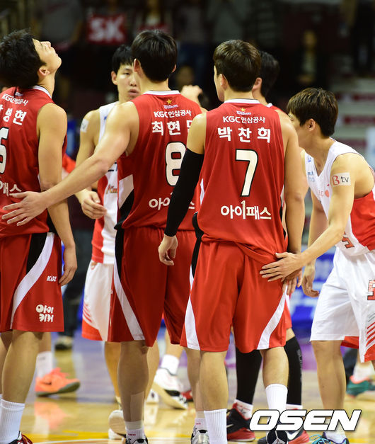 4쿼터 KGC 선수들이 패배를 아쉬워하고 있다. /jpnews@osen.co.kr