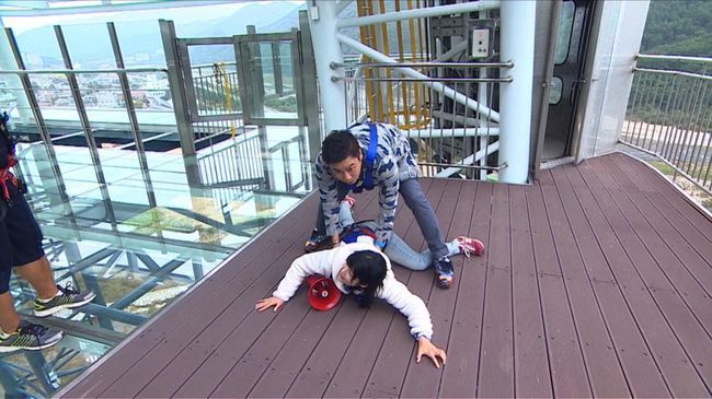 이후 ‘스카이 점프’ 체험장에서 두 사람은 두근거리는 마음으로 아파트 20층 높이인 50m 상공의 전망대에 올랐다. 생각보다 아찔한 높이에 사유리는 부들거리는 다리를 주체하지 못하며 “생각보다 너무 무섭다”며 바닥에 엎드려 절규했다.