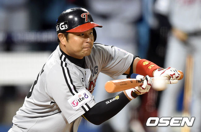 4회초 1사 2루에서 LG 최경철이 기습번트에 성공하고 있다.
