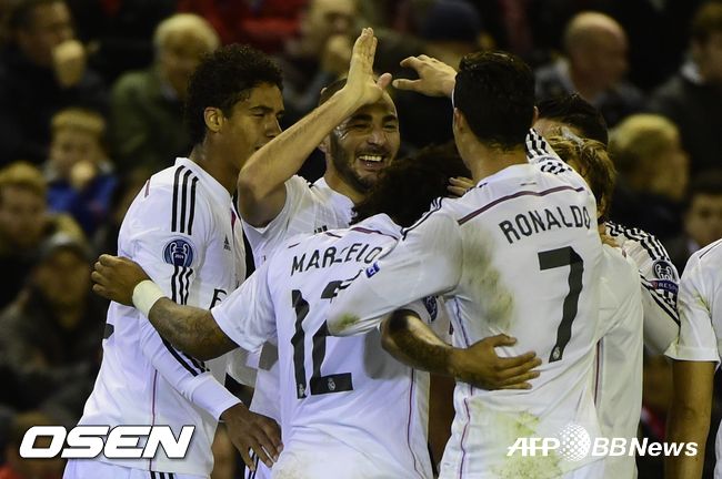 레알은 23일 새벽 3시 45분(한국시간) 잉글랜드 리버풀 안 필드서 열린 2014-2015 유럽축구연맹 챔피언스리그(UCL) 조별리그 3차전 원정 경기서 리버풀을 3-0으로 완파했다. 전반에만 호날두의 선제골과 카림 벤제마의 2골이 연달아 터지며 일찌감치 승부를 갈랐다.