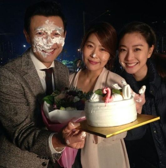 공개된 사진 속에는 다정한 포즈로 카메라를 응시하고 있는 김호진과 김지영, 차현정의 모습이 담겨있다. 특히 세 사람은 케이크크림을 얼굴에 묻힌 채 환한 미소를 짓고 있는 모습으로 훈훈한 분위기를 자아냈다.