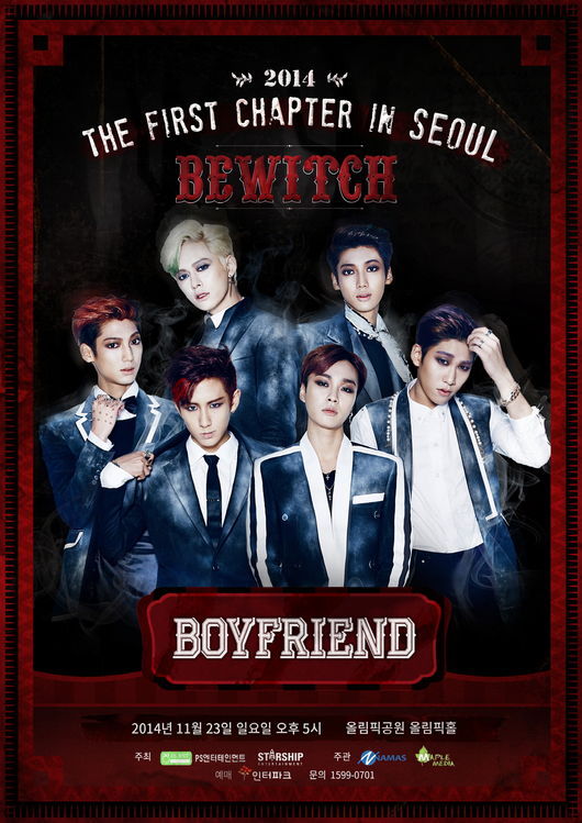 세 번째 미니앨범 ‘위치(WITCH)’로 컴백한 보이프렌드는 국내 첫 단독 콘서트 '2014 보이프렌드, 더 퍼스트 챕터 인 서울-비위치(2014 Boyfriend, the first chapter in Seoul-Bewitch)’를 내달 23일 서울 올림픽공원 올림픽홀에서 개최한다.