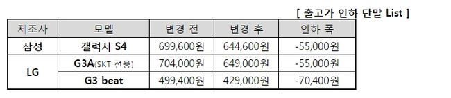 SK텔레콤은 단말기 유통법 시행 후 최근 갤럭시 그랜드2, 갤럭시 윈, LG G-pro등의 중저가 단말을 찾는 고객이 늘었다고 밝혔다. SK텔레콤에 따르면, 출고가 50만원 이하 단말 판매 비중이 법 시행 전인 9월 약 22%에서 10월에는 26% 수준까지 증가했다.
