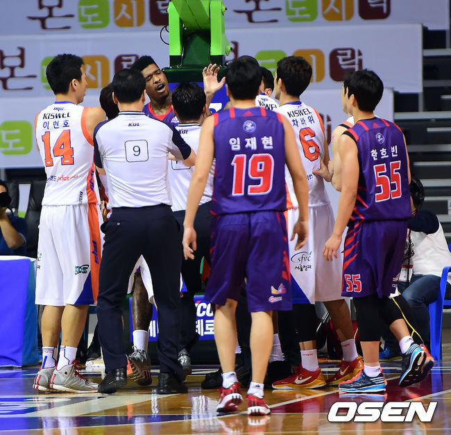 23일 오후 경기도 고양실내체육관에서 '2014-2015 KCC 프로농구' 오리온스-전자랜드 경기가 열렸다. 오리온스는 개막 후 5경기 동안 한 번도 패하지 않고 5연승을 기록하며 10개 구단 중 유일하게 패배가 없는 팀이다. 전자랜드도 3승 1패로 오리온스에 이어 2위를 기록중이다. 1쿼터 오리온스 가르시아와 전자랜드 포웰이 신경전을 벌이고 있다. / youngrae@osen.co.kr