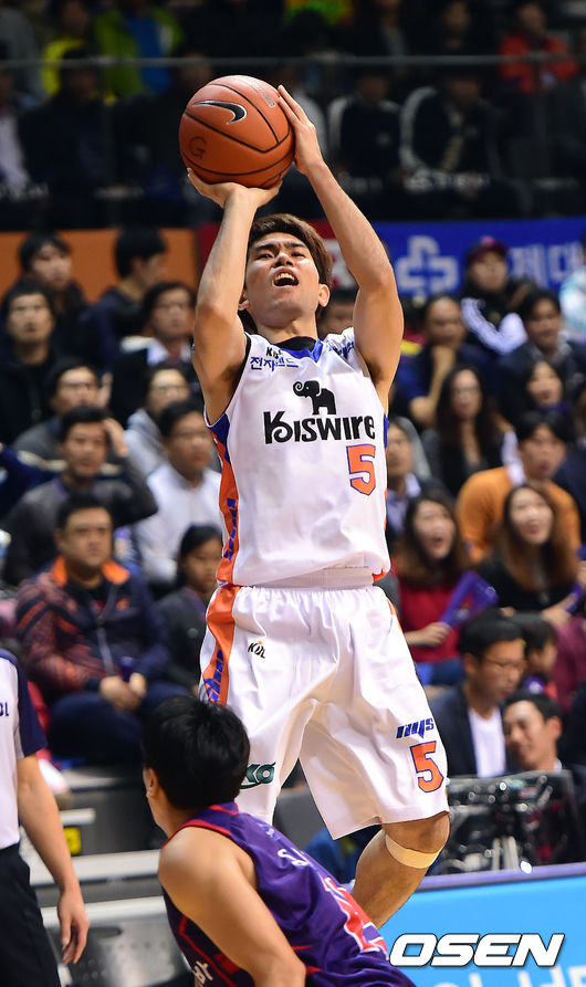 23일 오후 경기도 고양실내체육관에서 '2014-2015 KCC 프로농구' 오리온스-전자랜드 경기가 열렸다. 오리온스는 개막 후 5경기 동안 한 번도 패하지 않고 5연승을 기록하며 10개 구단 중 유일하게 패배가 없는 팀이다. 전자랜드도 3승 1패로 오리온스에 이어 2위를 기록중이다. 1쿼터 전자랜드 정병국이 점프슛을 시도하고 있다. / youngrae@osen.co.kr