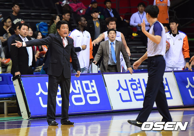 23일 오후 경기도 고양실내체육관에서 '2014-2015 KCC 프로농구' 오리온스-전자랜드 경기가 열렸다. 오리온스는 개막 후 5경기 동안 한 번도 패하지 않고 5연승을 기록하며 10개 구단 중 유일하게 패배가 없는 팀이다. 전자랜드도 3승 1패로 오리온스에 이어 2위를 기록중이다. 전자랜드 유도훈 감독이 테크니컬 파울에 대해 어필하고 있다. / youngrae@osen.co.kr