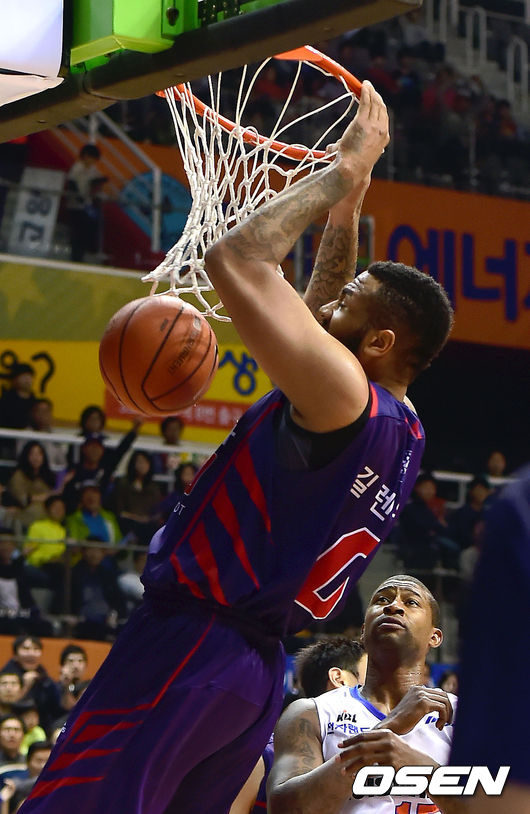 23일 오후 경기도 고양실내체육관에서 '2014-2015 KCC 프로농구' 오리온스-전자랜드 경기가 열렸다. 오리온스는 개막 후 5경기 동안 한 번도 패하지 않고 5연승을 기록하며 10개 구단 중 유일하게 패배가 없는 팀이다. 전자랜드도 3승 1패로 오리온스에 이어 2위를 기록중이다. 4쿼터 오리온스 길렌워터가 덩크를 하고 있다. / youngrae@osen.co.kr