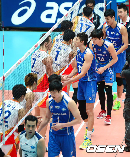 대한항공은 23일 오후 성남체육관에서 열린 NH농협 2014-2015 프로배구 V리그 남자부 경기서 한국전력을 세트스코어 3-0(26-24, 28-26, 25-23)으로 완파했다.