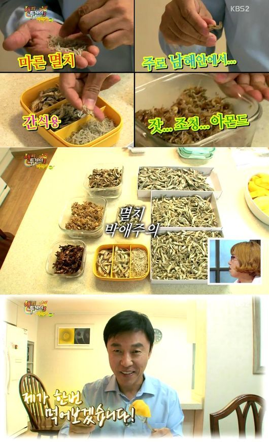 이영돈PD는 23일 오후 방송된 KBS 2TV 예능프로그램 ‘해피 투게더3’에서 영상을 통해 집안을 공개하며 평소 즐겨 먹는 멸치 반찬들을 선보였다.