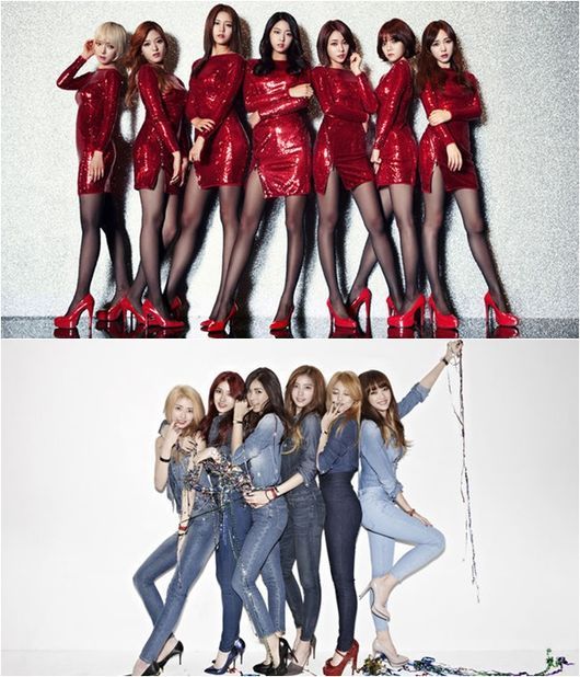 AOA(위, FNC엔터테인먼트 제공)와 헬로비너스(판타지오뮤직 제공).