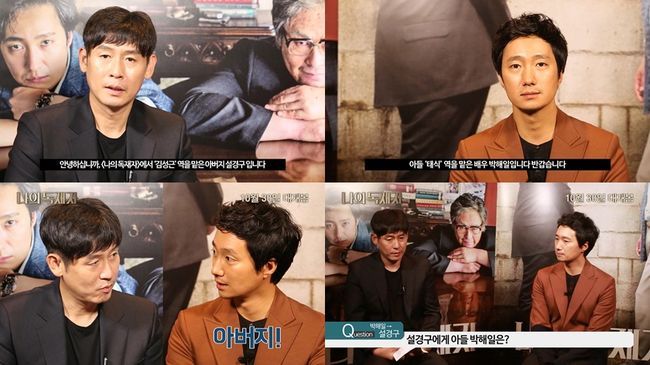 공개된 영상 속 아들 태식 역을 맡은 박해일에 대해 설경구는 "박해일은 아버지라고 부르기 쉽지 않았을 텐데 문자로 계속 아버지라고 말했다"고 말해 시선을 모았다.