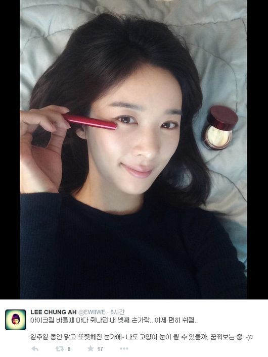평소 반짝반짝 윤이나는 꿀광 피부와 남다른 패션센스를 자랑하며 ‘여성들의 워너비’로 여겨지는 이청아가 자신의 트위터를 통해 피부관리하는 일상사진을 공개한 것.