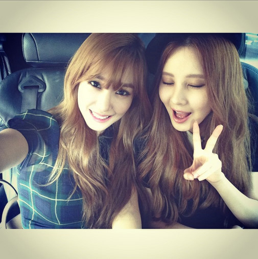 공개된 사진 속에는 차 안에서 카메라를 향해 밝게 미소 짓고 있는 티파니와 눈을 지그시 감은 채 손가락 브이를 그리고 있는 서현의 모습이 보인다. 특히 두 사람은 어두운 체크 무늬 원피스와 밝은 컬러의 헤어로 완벽한 가을여자로 변신해 눈길을 끈다.
