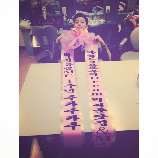 [OSEN=정소영 인턴기자] 배우 박서준이 KBS 2TV ‘뮤직뱅크’ MC 1주년을 맞아 인간화환으로 변신했다.