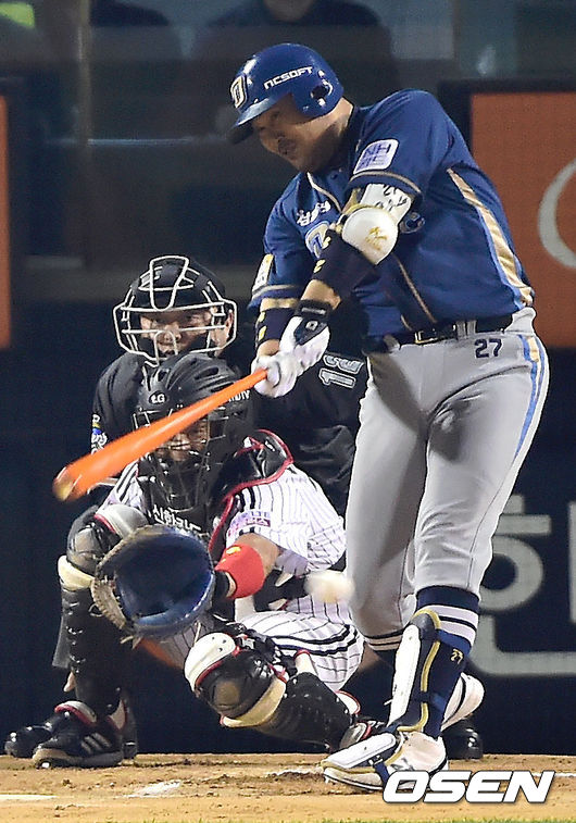 24일 오후 서울 잠실구장에서 열린 '2014 한국야쿠르트 세븐 프로야구' 포스트시즌 준플레이오프 3차전 LG 트윈스와 NC 다이노스의 경기, 1회초 2사 2루 NC 이호준이 적시타를 때리고 있다. 반격이냐, 마침표냐. 두 외국인 투수들에게 양 팀의 운명이 달렸다. NC와 LG의 준플레이오프 3차전은 이번 시리즈 처음으로 외국인 투수들이 선발 대결이다. NC는 찰리 쉬렉(29), LG는 코리 리오단(28)을 각각 3차전 선발투수로 예고했다. NC는 반격의 1승을 노리고, LG는 3연승으로 시리즈 스윕을 바라본다. NC 찰리는 실질적인 팀의 에이스. 지난해 29경기에서 189이닝을 던지며 11승7패 평균자책점 2.48로 이 부문 1위에 올라 재계약에 성공한 찰리는 2년차가 된 올해도 28경기에서 165⅓이닝을 소화하며 12승8패 평균자책점 3.81로 2년 연속 두 자릿수 승수를 올렸다. LG 리오단은 한국프로야구 데뷔 첫 해 적응기를 거쳐 연착륙했다. 28경기에서 168이닝을 던진 그는 9승10패 평균자책점 3.96으로 준수한 성적을 냈다. 비록 두 자릿수 승수에는 도달하지 못했지만, 팀 내 최다 16차례 퀄리티 스타트의 꾸준함으로 안정감을 자랑했다. / youngrae@osen.co.kr