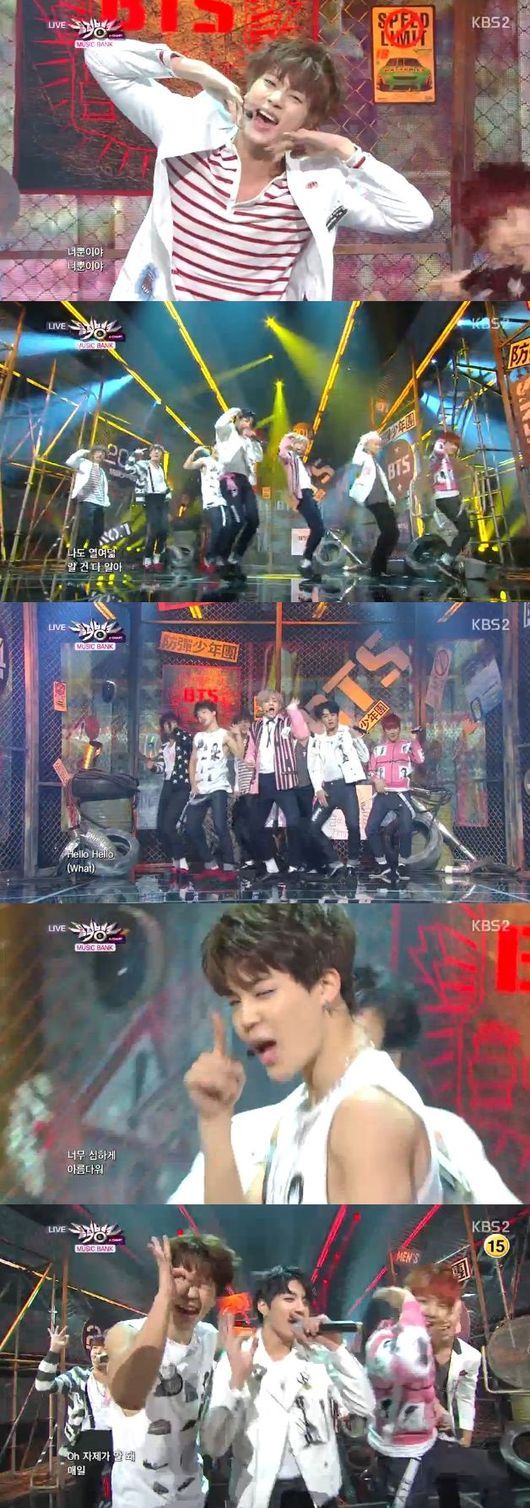 방탄소년단은 24일 오후 6시 30분 방송된 KBS 2TV '뮤직뱅크'에서 곡 '호르몬 전쟁'으로 컴백 무대를 펼쳤다.