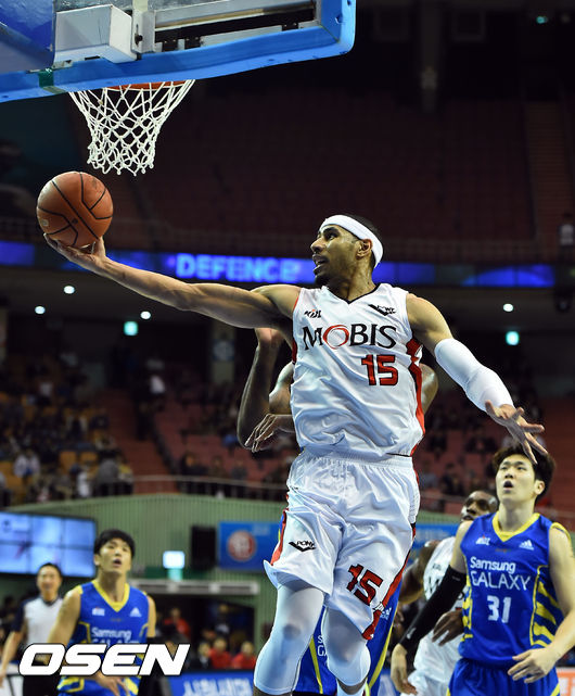 24일 오후 서울 잠실실내체육관에서 열린 '2014-2015 프로농구' 서울 삼성 썬더스와 울산 모비스 피버스의 경기, 1쿼터 모비스 문태영이 속공에 성공하고 있다.