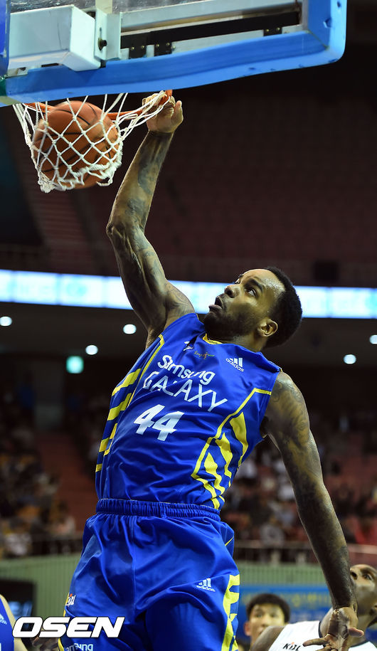 24일 오후 서울 잠실실내체육관에서 열린 '2014-2015 프로농구' 서울 삼성 썬더스와 울산 모비스 피버스의 경기, 3쿼터 삼성 라이온스가 원핸드 덩크슛을 성공시키고 있다.