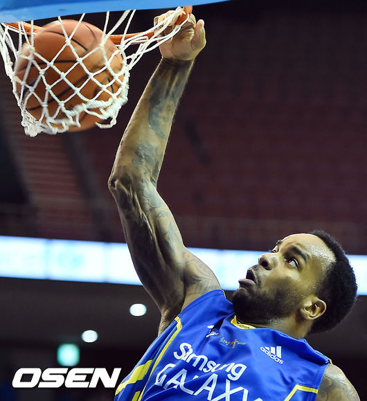 24일 오후 서울 잠실실내체육관에서 열린 '2014-2015 프로농구' 서울 삼성 썬더스와 울산 모비스 피버스의 경기, 3쿼터 삼성 라이온스가 원핸드 덩크슛을 성공시키고 있다.