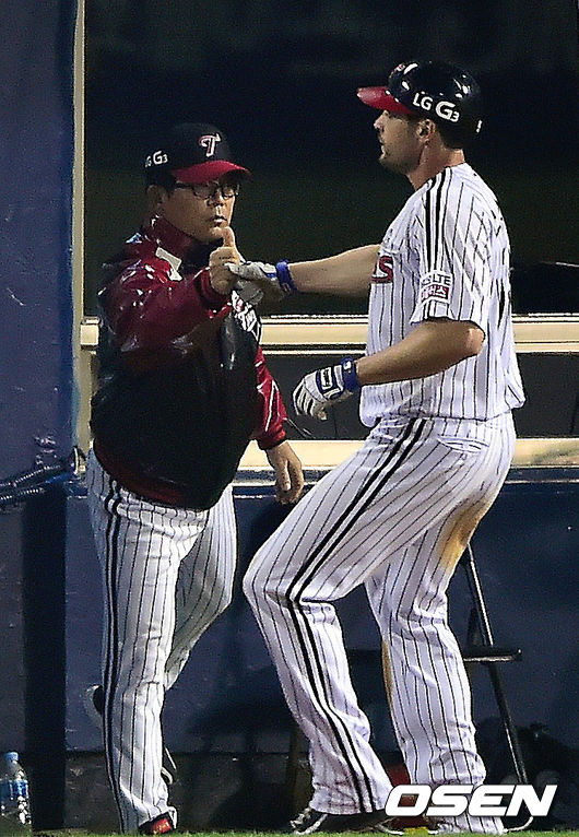24일 오후 서울 잠실구장에서 열린 '2014 한국야쿠르트 세븐 프로야구' 포스트시즌 준플레이오프 3차전 LG 트윈스와 NC 다이노스의 경기, 4회말 1사 1,3루 LG 양상문 감독이 손주인의 좌익수 희생플라이로 득점을 올린 스나이더와 하이파이브를 하고 있다. 반격이냐, 마침표냐. 두 외국인 투수들에게 양 팀의 운명이 달렸다. NC와 LG의 준플레이오프 3차전은 이번 시리즈 처음으로 외국인 투수들이 선발 대결이다. NC는 찰리 쉬렉(29), LG는 코리 리오단(28)을 각각 3차전 선발투수로 예고했다. NC는 반격의 1승을 노리고, LG는 3연승으로 시리즈 스윕을 바라본다. NC 찰리는 실질적인 팀의 에이스. 지난해 29경기에서 189이닝을 던지며 11승7패 평균자책점 2.48로 이 부문 1위에 올라 재계약에 성공한 찰리는 2년차가 된 올해도 28경기에서 165⅓이닝을 소화하며 12승8패 평균자책점 3.81로 2년 연속 두 자릿수 승수를 올렸다. LG 리오단은 한국프로야구 데뷔 첫 해 적응기를 거쳐 연착륙했다. 28경기에서 168이닝을 던진 그는 9승10패 평균자책점 3.96으로 준수한 성적을 냈다. 비록 두 자릿수 승수에는 도달하지 못했지만, 팀 내 최다 16차례 퀄리티 스타트의 꾸준함으로 안정감을 자랑했다. / youngrae@osen.co.kr