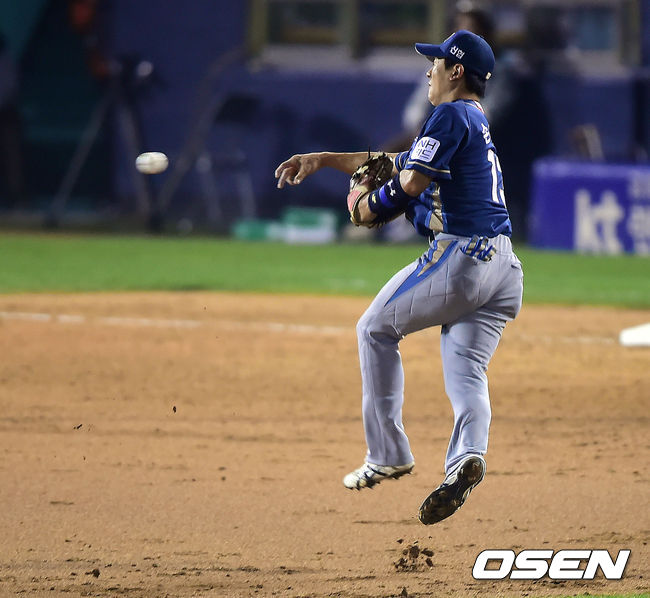 24일 오후 서울 잠실구장에서 열린 '2014 한국야쿠르트 세븐 프로야구' 포스트시즌 준플레이오프 3차전 LG 트윈스와 NC 다이노스의 경기, 4회말 1사 1루 NC 손시헌이 LG 최경철의 내야 땅볼때 2루로 악송구를 하고 있다. 반격이냐, 마침표냐. 두 외국인 투수들에게 양 팀의 운명이 달렸다. NC와 LG의 준플레이오프 3차전은 이번 시리즈 처음으로 외국인 투수들이 선발 대결이다. NC는 찰리 쉬렉(29), LG는 코리 리오단(28)을 각각 3차전 선발투수로 예고했다. NC는 반격의 1승을 노리고, LG는 3연승으로 시리즈 스윕을 바라본다. NC 찰리는 실질적인 팀의 에이스. 지난해 29경기에서 189이닝을 던지며 11승7패 평균자책점 2.48로 이 부문 1위에 올라 재계약에 성공한 찰리는 2년차가 된 올해도 28경기에서 165⅓이닝을 소화하며 12승8패 평균자책점 3.81로 2년 연속 두 자릿수 승수를 올렸다. LG 리오단은 한국프로야구 데뷔 첫 해 적응기를 거쳐 연착륙했다. 28경기에서 168이닝을 던진 그는 9승10패 평균자책점 3.96으로 준수한 성적을 냈다. 비록 두 자릿수 승수에는 도달하지 못했지만, 팀 내 최다 16차례 퀄리티 스타트의 꾸준함으로 안정감을 자랑했다. / youngrae@osen.co.kr