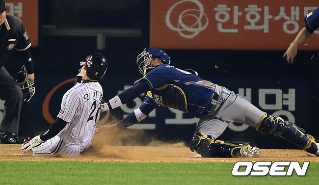 24일 오후 서울 잠실구장에서 열린 '2014 한국야쿠르트 세븐 프로야구' 포스트시즌 준플레이오프 3차전 LG 트윈스와 NC 다이노스의 경기, 5회말 무사 1,3루 LG 오지환이 이병규의 중견수 희생플라이때 홈으로 쇄도하다 아웃당하고 있다. 반격이냐, 마침표냐. 두 외국인 투수들에게 양 팀의 운명이 달렸다. NC와 LG의 준플레이오프 3차전은 이번 시리즈 처음으로 외국인 투수들이 선발 대결이다. NC는 찰리 쉬렉(29), LG는 코리 리오단(28)을 각각 3차전 선발투수로 예고했다. NC는 반격의 1승을 노리고, LG는 3연승으로 시리즈 스윕을 바라본다. NC 찰리는 실질적인 팀의 에이스. 지난해 29경기에서 189이닝을 던지며 11승7패 평균자책점 2.48로 이 부문 1위에 올라 재계약에 성공한 찰리는 2년차가 된 올해도 28경기에서 165⅓이닝을 소화하며 12승8패 평균자책점 3.81로 2년 연속 두 자릿수 승수를 올렸다. LG 리오단은 한국프로야구 데뷔 첫 해 적응기를 거쳐 연착륙했다. 28경기에서 168이닝을 던진 그는 9승10패 평균자책점 3.96으로 준수한 성적을 냈다. 비록 두 자릿수 승수에는 도달하지 못했지만, 팀 내 최다 16차례 퀄리티 스타트의 꾸준함으로 안정감을 자랑했다. / youngrae@osen.co.kr