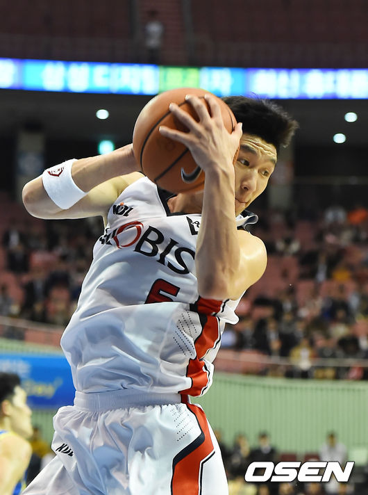 24일 오후 서울 잠실실내체육관에서 열린 '2014-2015 프로농구' 서울 삼성 썬더스와 울산 모비스 피버스의 경기, 4쿼터 모비스 양동근이 리바운드를 하고 있다.