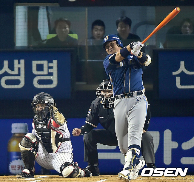 24일 오후 서울 잠실구장에서 열린 '2014 한국야쿠르트 세븐 프로야구' 포스트시즌 준플레이오프 3차전 LG 트윈스와 NC 다이노스의 경기, 6회초 1사 NC 이호준이 솔로 홈런을 날리고 있다. 반격이냐, 마침표냐. 두 외국인 투수들에게 양 팀의 운명이 달렸다. NC와 LG의 준플레이오프 3차전은 이번 시리즈 처음으로 외국인 투수들이 선발 대결이다. NC는 찰리 쉬렉(29), LG는 코리 리오단(28)을 각각 3차전 선발투수로 예고했다. NC는 반격의 1승을 노리고, LG는 3연승으로 시리즈 스윕을 바라본다. NC 찰리는 실질적인 팀의 에이스. 지난해 29경기에서 189이닝을 던지며 11승7패 평균자책점 2.48로 이 부문 1위에 올라 재계약에 성공한 찰리는 2년차가 된 올해도 28경기에서 165⅓이닝을 소화하며 12승8패 평균자책점 3.81로 2년 연속 두 자릿수 승수를 올렸다. LG 리오단은 한국프로야구 데뷔 첫 해 적응기를 거쳐 연착륙했다. 28경기에서 168이닝을 던진 그는 9승10패 평균자책점 3.96으로 준수한 성적을 냈다. 비록 두 자릿수 승수에는 도달하지 못했지만, 팀 내 최다 16차례 퀄리티 스타트의 꾸준함으로 안정감을 자랑했다. / youngrae@osen.co.kr