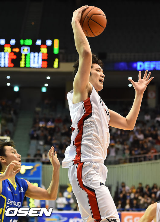 24일 오후 서울 잠실실내체육관에서 열린 '2014-2015 프로농구' 서울 삼성 썬더스와 울산 모비스 피버스의 경기, 4쿼터 모비스 함지훈이 리바운드를 하고 있다.