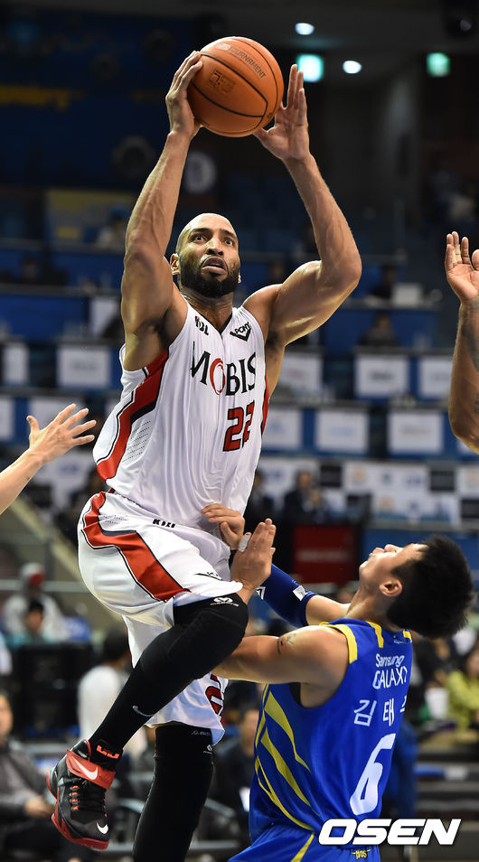 24일 오후 서울 잠실실내체육관에서 열린 '2014-2015 프로농구' 서울 삼성 썬더스와 울산 모비스 피버스의 경기, 4쿼터 모비스 클라크가 슛을 시도하고 있다.