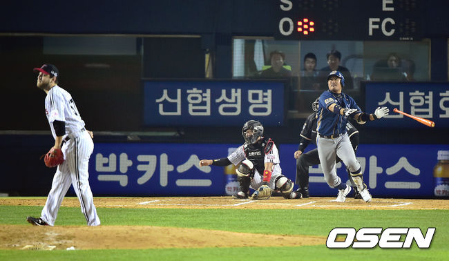 24일 오후 서울 잠실구장에서 열린 '2014 한국야쿠르트 세븐 프로야구' 포스트시즌 준플레이오프 3차전 LG 트윈스와 NC 다이노스의 경기, 6회초 1사 NC 이호준이 솔로 홈런을 날리고 있다. 반격이냐, 마침표냐. 두 외국인 투수들에게 양 팀의 운명이 달렸다. NC와 LG의 준플레이오프 3차전은 이번 시리즈 처음으로 외국인 투수들이 선발 대결이다. NC는 찰리 쉬렉(29), LG는 코리 리오단(28)을 각각 3차전 선발투수로 예고했다. NC는 반격의 1승을 노리고, LG는 3연승으로 시리즈 스윕을 바라본다. NC 찰리는 실질적인 팀의 에이스. 지난해 29경기에서 189이닝을 던지며 11승7패 평균자책점 2.48로 이 부문 1위에 올라 재계약에 성공한 찰리는 2년차가 된 올해도 28경기에서 165⅓이닝을 소화하며 12승8패 평균자책점 3.81로 2년 연속 두 자릿수 승수를 올렸다. LG 리오단은 한국프로야구 데뷔 첫 해 적응기를 거쳐 연착륙했다. 28경기에서 168이닝을 던진 그는 9승10패 평균자책점 3.96으로 준수한 성적을 냈다. 비록 두 자릿수 승수에는 도달하지 못했지만, 팀 내 최다 16차례 퀄리티 스타트의 꾸준함으로 안정감을 자랑했다. / youngrae@osen.co.kr