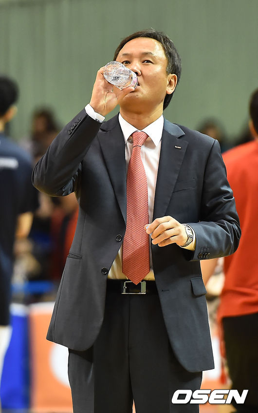 경기를 마치고 모비스 유재학 감독이 물을 마시고 있다. /rumi@osen.co.kr