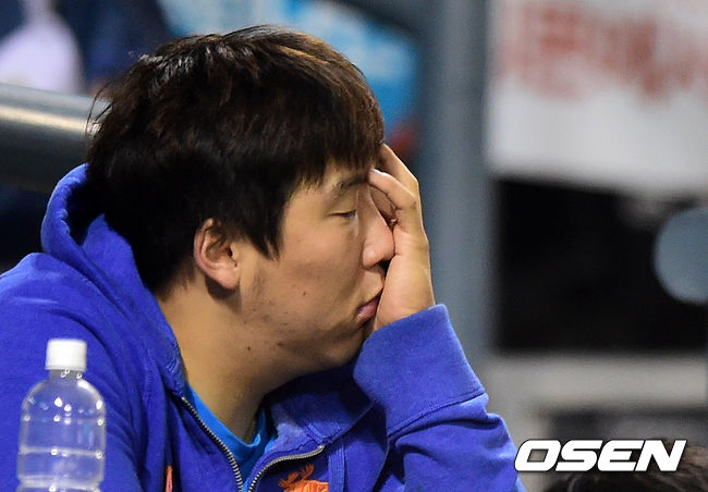 24일 오후 서울 잠실구장에서 열린 2014 한국야쿠르트 세븐 프로야구 포스트시즌 준플레이오프 3차전 LG 트윈스와 NC 다이노스의 경기, 두산 김현수가 경기를 관전하고 있다.